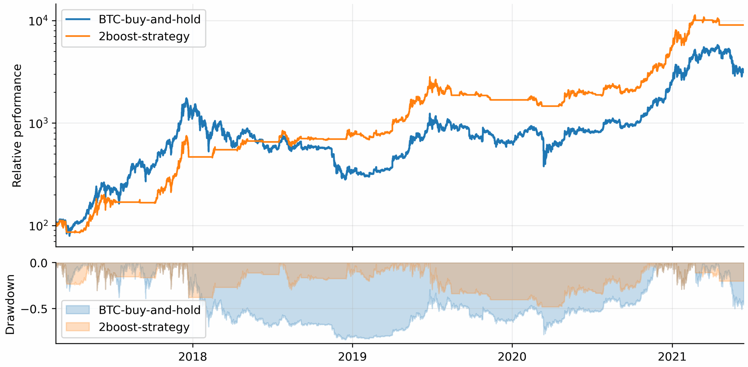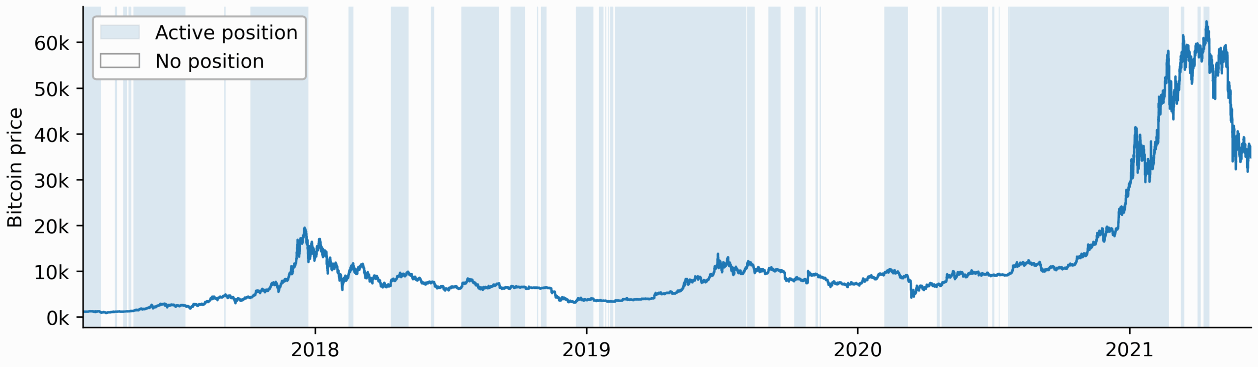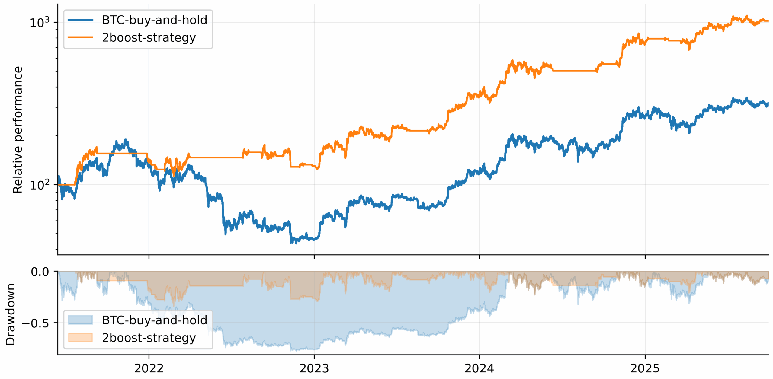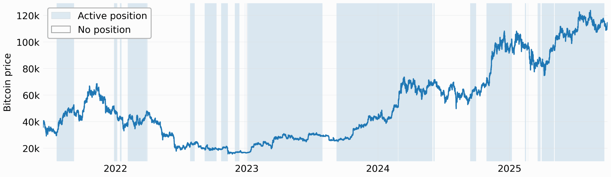 The strategy was developed and evaluated using historical Kraken XBTUSD data across multiple market cycles since 2017.